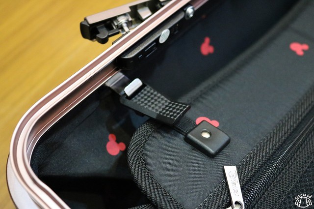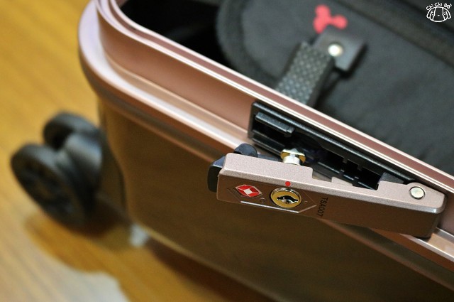 兩邊提把的玫瑰金邊框上都刻印了Disney,它的把手有一個很特別的設計,內置半永久式彈簧機關,放開後還會自動回彈定位,照片無法呈現出來,我用手機簡單錄了幾秒鐘。