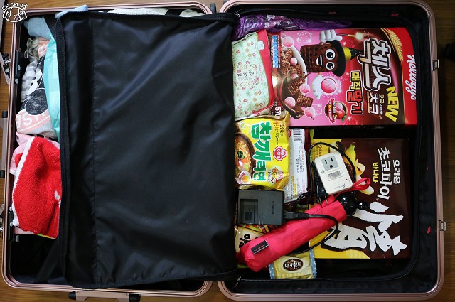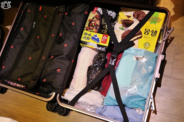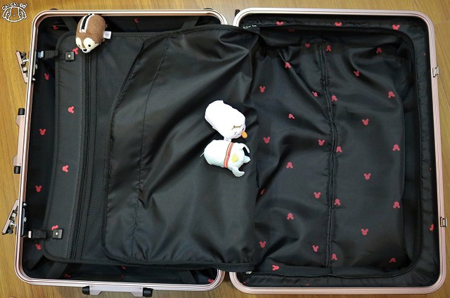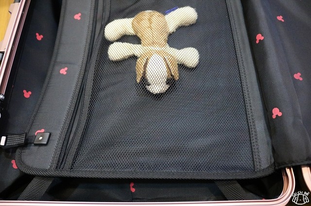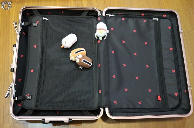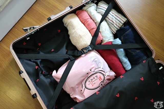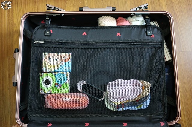 最後一張圖為回家後打開的第一時間樣子,所有物品皆安穩的留在原位,陪我征戰韓國的Deseno巧克力米奇行李箱,內袋收納設計真的很得我心!